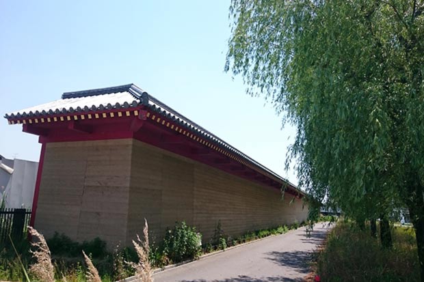 その朱雀大路沿いにある土塀の復元工事を1997年に行いました。